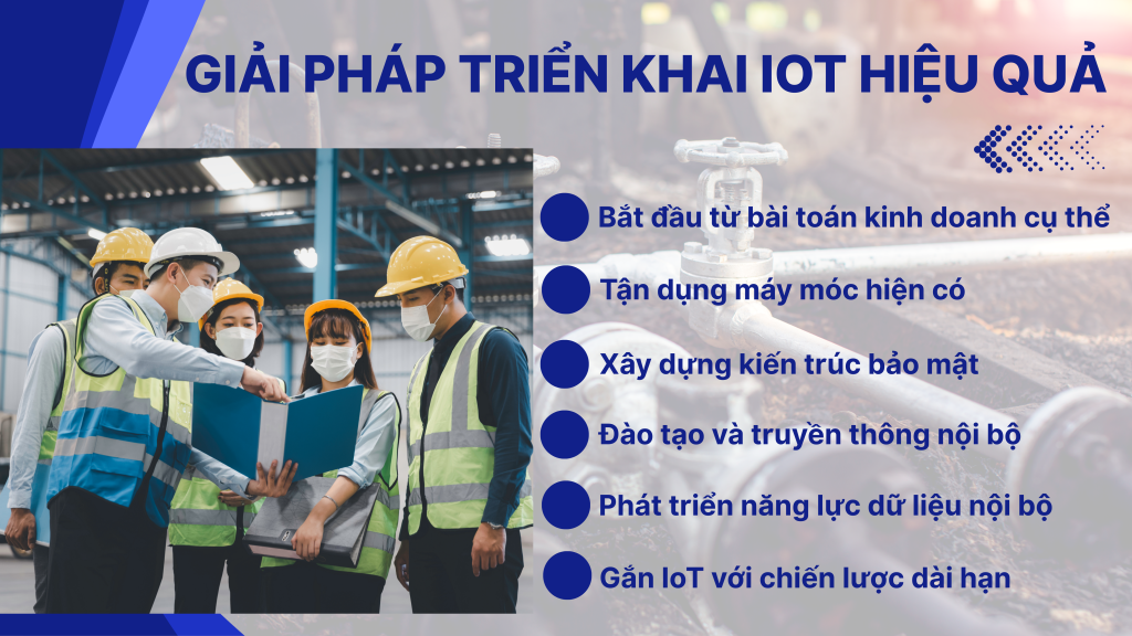 Để vượt qua rào cản này, doanh nghiệp cần nhấn mạnh rằng IoT không nhằm kiểm soát con người, mà nhằm hỗ trợ họ làm việc an toàn hơn, giảm áp lực công việc và hạn chế các sự cố ngoài ý muốn. Việc xây dựng văn hóa dữ liệu, nơi mọi quyết định được dựa trên số liệu minh bạch, sẽ giúp IoT trở thành công cụ hỗ trợ thay vì gánh nặng trong tổ chức.